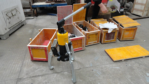 4、液壓拉馬的活塞起動桿有效距只有50mm,故使用時伸距不得大于50mm,當(dāng)沒有拉出時停止,松開回油閥門,讓活塞起動桿縮回去,調(diào)好后第二次再重復(fù)1、2、3步驟拉出為止。